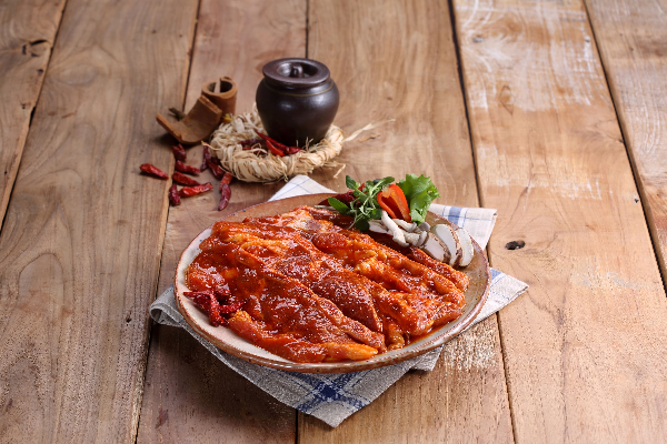 Jeyuk-bokkeum is typically marinated and cooked immediately,