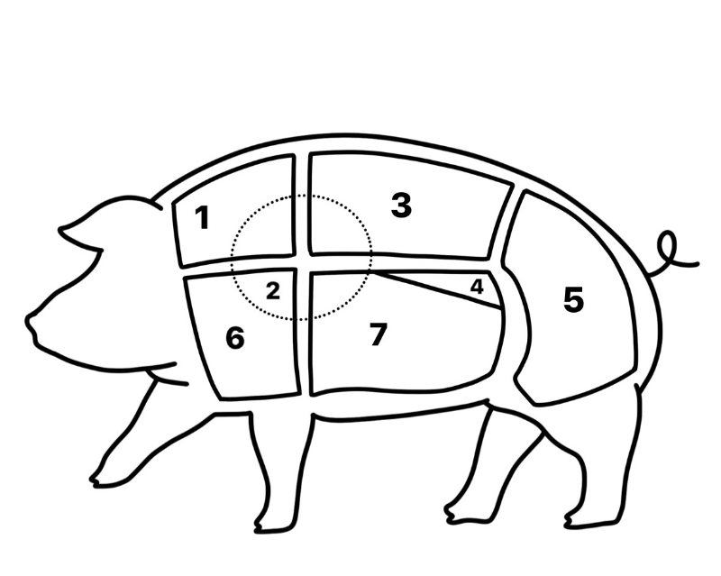 - English Equivalent: Ham (Hind leg), Picnic (Front leg)