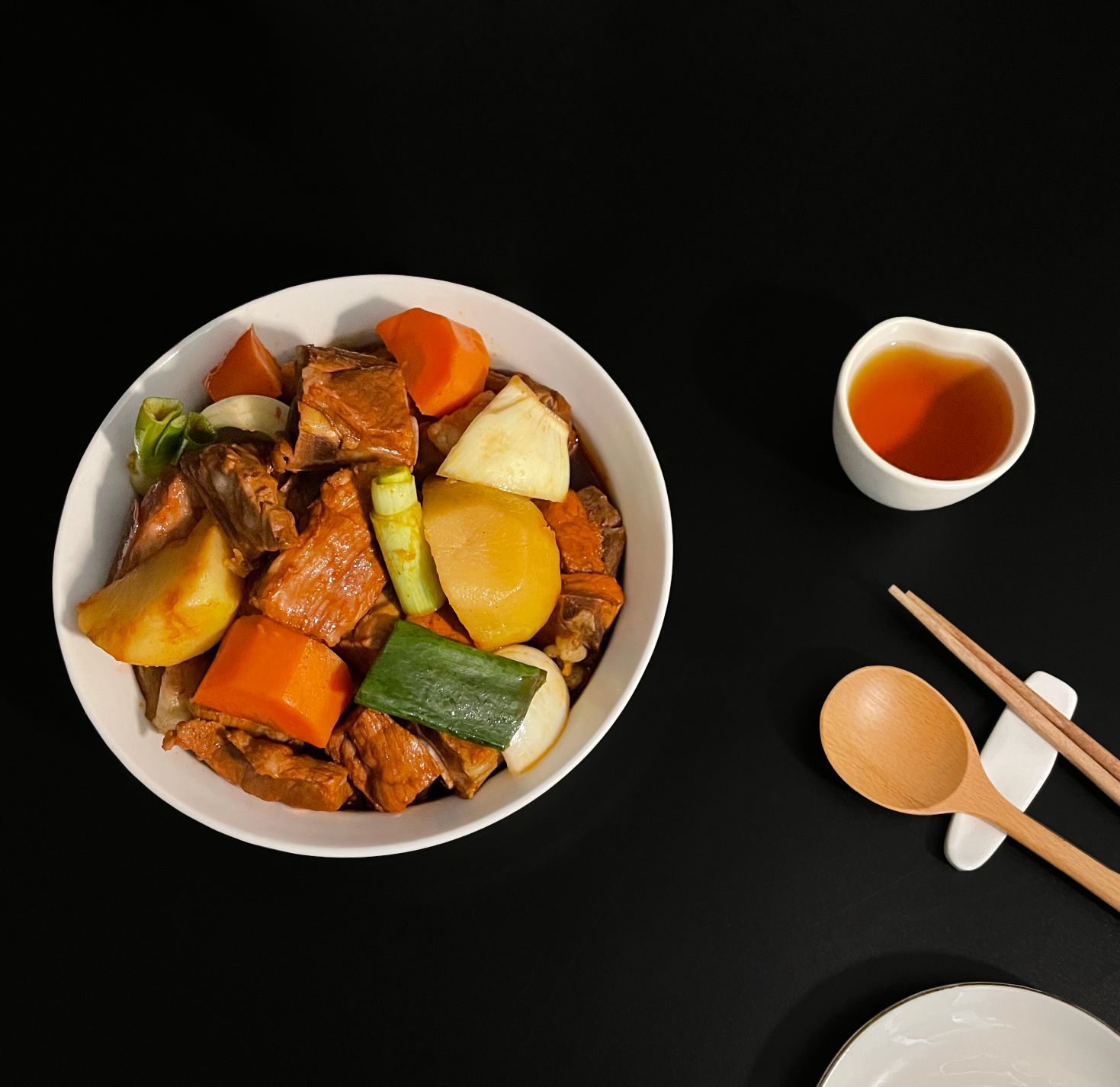 특이하게 궁중갈비찜은 간장을 베이스로 한 살짝 달콤한 요리로